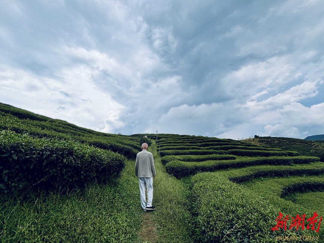 在炎陵种茶的中国台湾人古胜潭的背影。