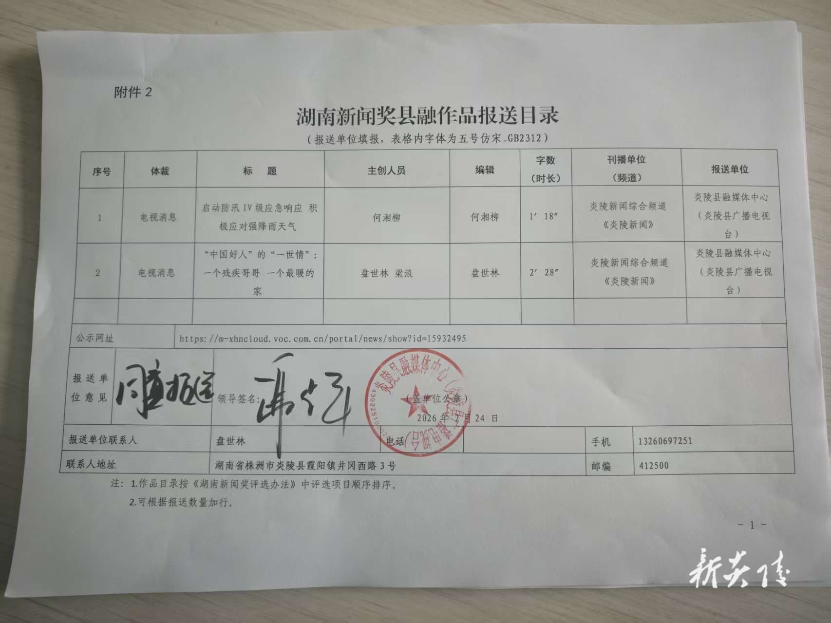 根据《湖南新闻奖评选办法》(湘记发〔2026〕1号)(以下简称《评选办法》)有关要求,现将炎陵县融媒体中心参评作品予以公示,公示期如有问题,请向本单位反映。