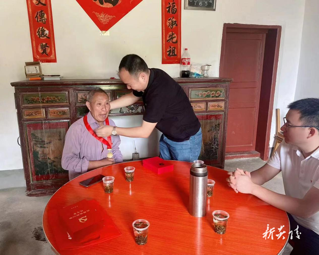 垄溪乡主要领导带队走访看望党龄满50年的老党员,颁发“光荣在党50年”纪念章。(通讯员 廖辉)